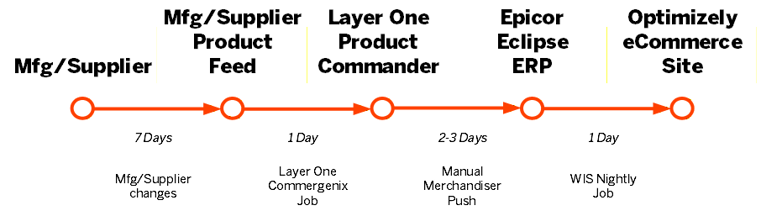 In the above example, we can see that while the manufacturer/supplier updates the price every 7 days, the price takes an additional 4-5 days to make it through to the eCommerce site.
